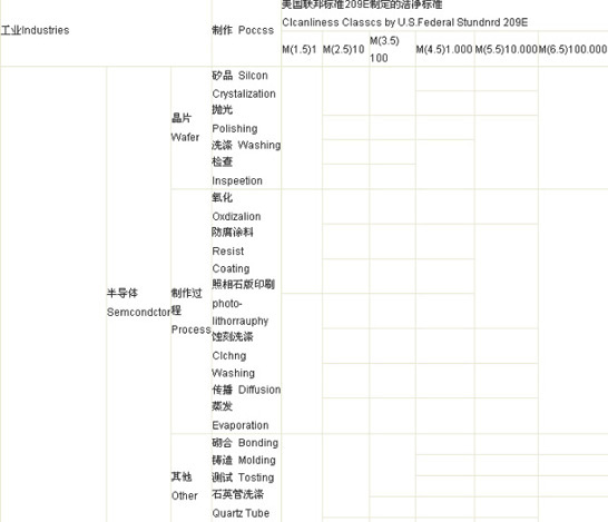 各種工業對淨化度的要求推薦